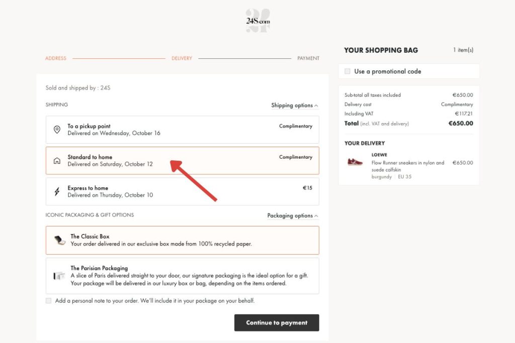 Choose “Standard to Home” as your shipping method and select gift wrapping if desired.
