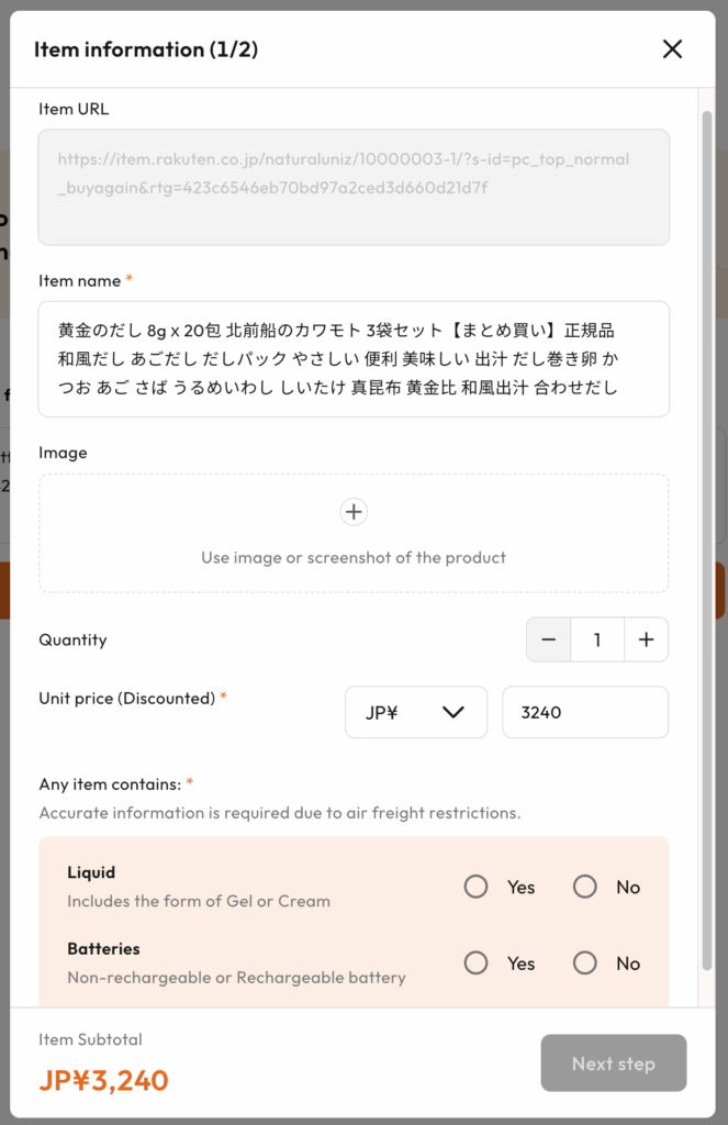 In the pop-up window, the system will automatically fill in the foreign name and price of the product. If it does not auto-fill, please enter the information manually. You will then need to fill in the product images yourself, if available.